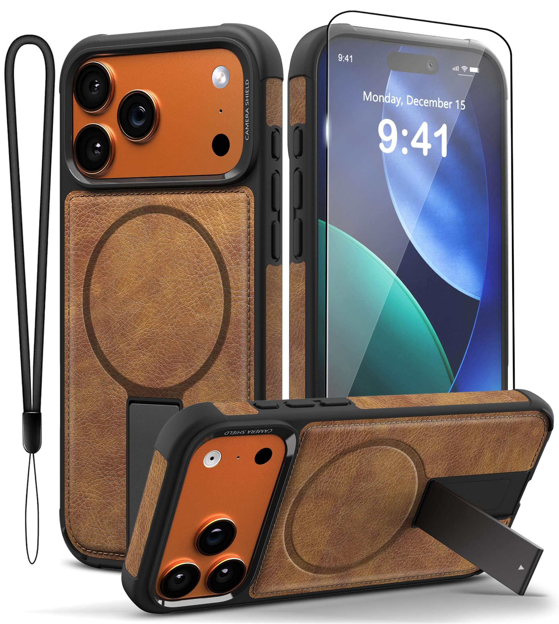 iPhone 17 Pro Max Premium Luxurious Original Leather Cover With KickStand & MagSafe