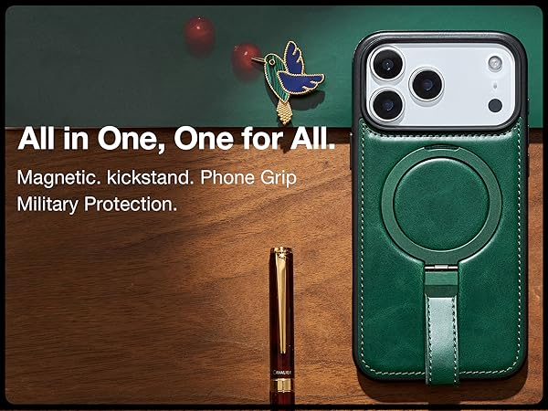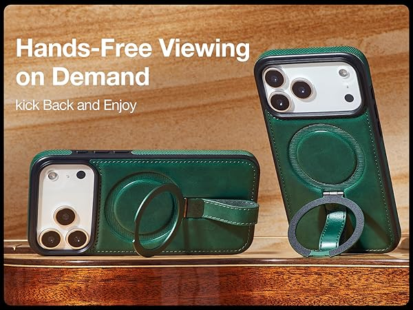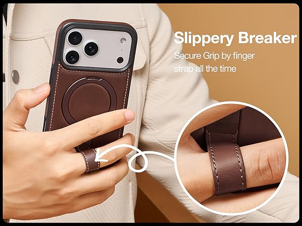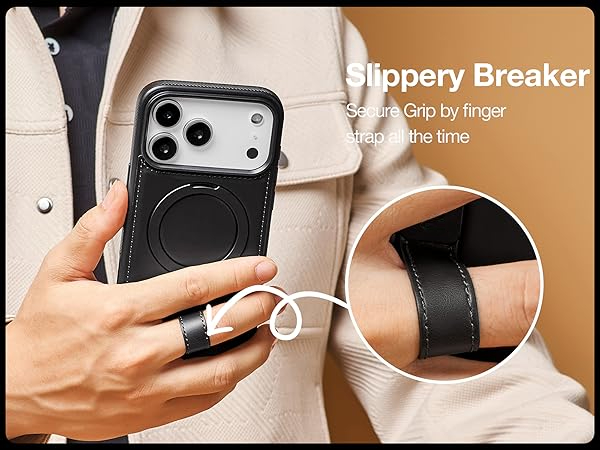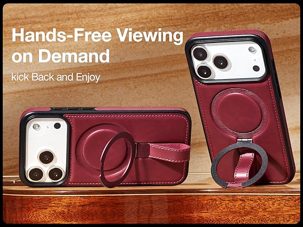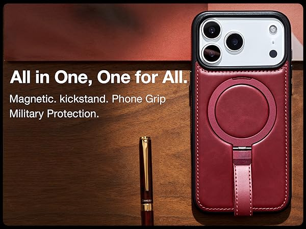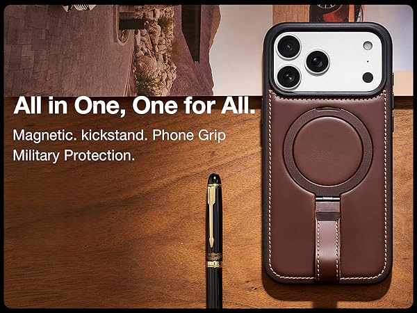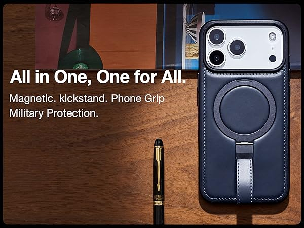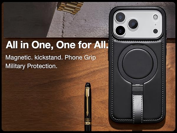 iPhone 17 Pro Max Premium Quality Luxurious Leather Cover With Ring Stand, Grip, Magsafe