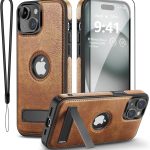 iPhone 15 Premium Luxurious Original Leather Cover With KickStand & MagSafe