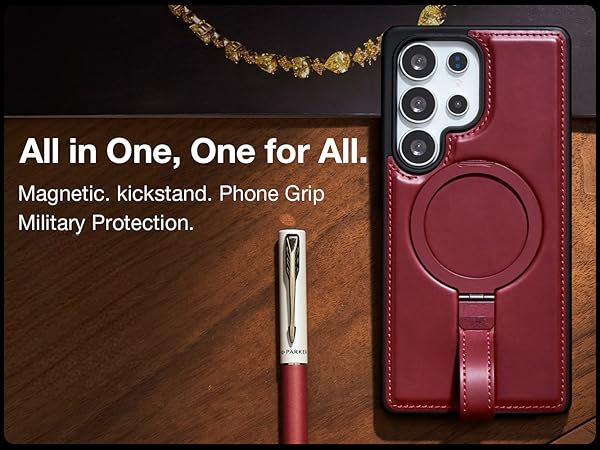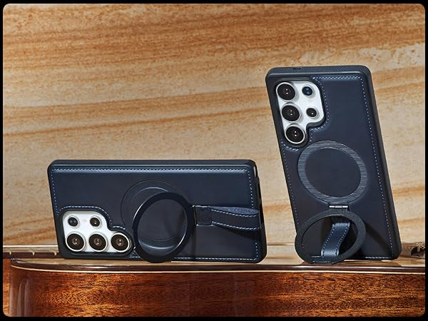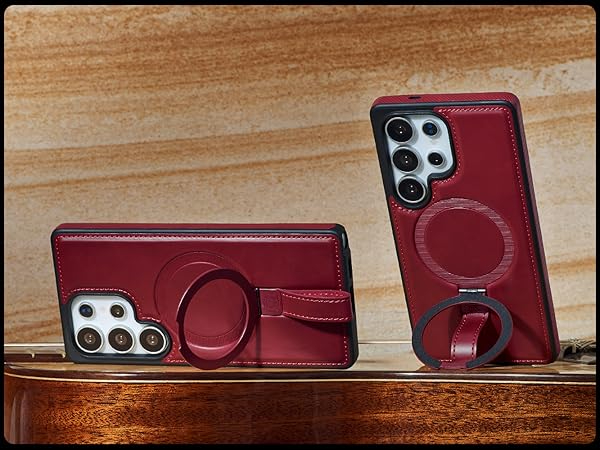 Samsung S21 Ultra Premium Quality Luxurious Leather Cover With Ring Stand, Grip, Magsafe